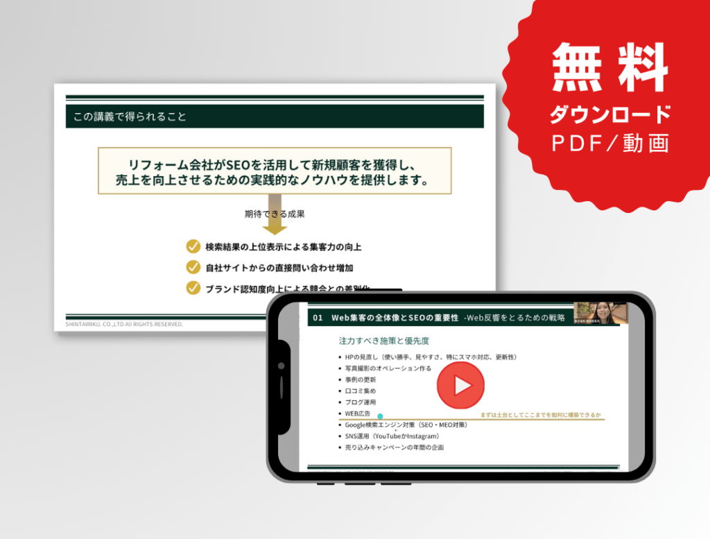 【PDF&動画】成果を出すSEO戦略「リフォーム会社が押さえるべき最新対策とは?」〜第2回リフォーム業界の“基本のき”Webマーケティング編〜