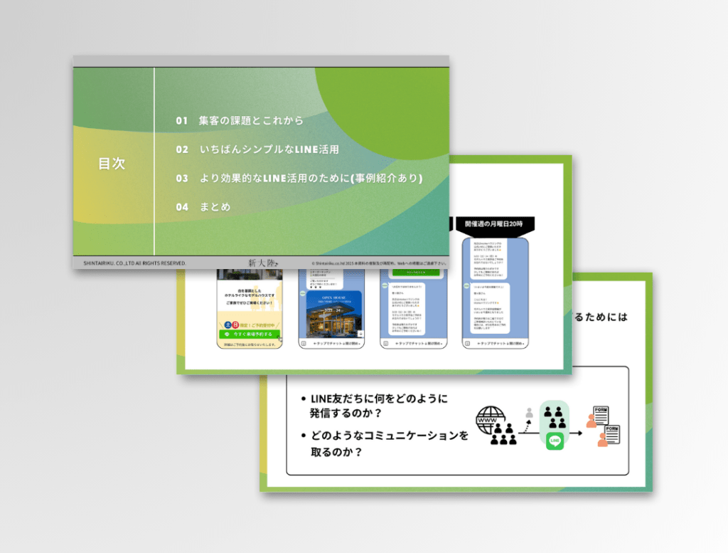 多くの機能がある公式LINEですが、本資料では「ホームページからの反響数を増やす」という目的に絞り、シンプルかつ効果的な活用法を解説します。