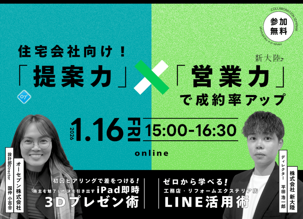 - 住宅会社向け!「提案力」×「営業力」で成約率アップ【新大陸×オーセブン】
