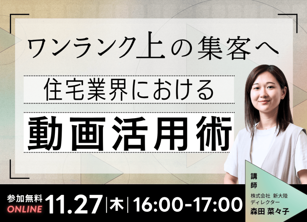 「Webで反響はあるけれど、もっと集客を強化したい」と感じる工務店様へ。画像やテキストの5000倍の伝える力を持つ「動画」を、集客の武器に変えませんか?本セミナーでは、確度の高い見込み客を獲得するための戦略的な動画活用術を徹底解説します。