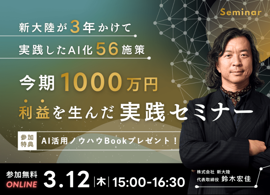 新大陸が3年かけて実践したAI化56施策|今期1000万円利益を生んだ実践セミナー